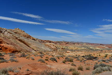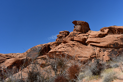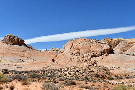 The wind blows fiercely at Valley of Fire State Park in Nevada where red Aztec sandstone outcroppings rise out of earth-tone limestone. Stepping out of the car for a quick photo, the air buffets my face, and it is easy to see how the constant wind has carved caves into the rocks.