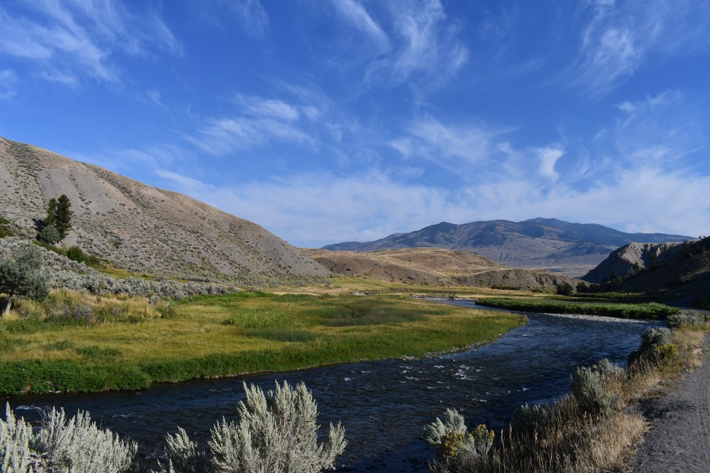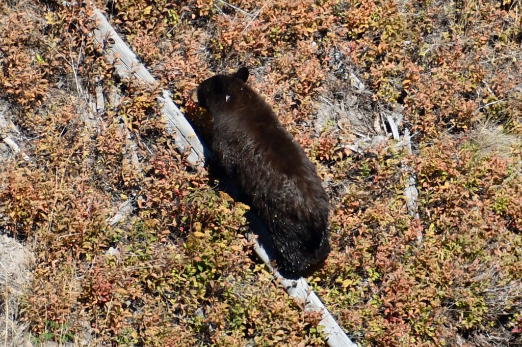 Fortunately, this is not our only animal encounter. As we drive through the Lamar Valley on the northern end of the park, we find another black bear, observe myriads of grazing bison, and watch several wolves dance at the edge of the great meadow near the tree line.