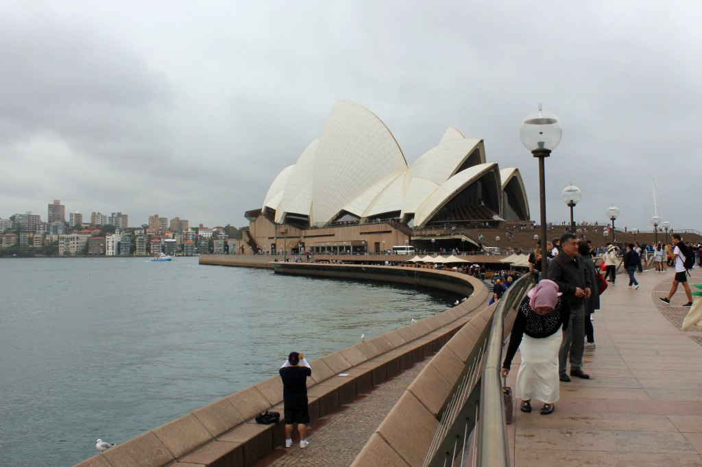 I have dreamed of photographing the opera house, one of the world’s most renown landmarks. There it is, under gray skies, rain cascading down its roof. Its normally gleaming “sails” are now a dreary shade of meh.